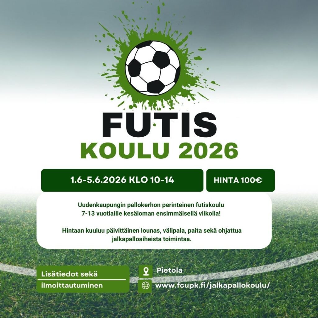 - Ilmoittautuminen UPK:n jalkapallokerhoon 2025UPK järjestää kesällä jalkapallokerhon pienemmille lapsille. Kerho on maanantaisin klo 17.00 – 18.00, 9.6.2025 alkaen …